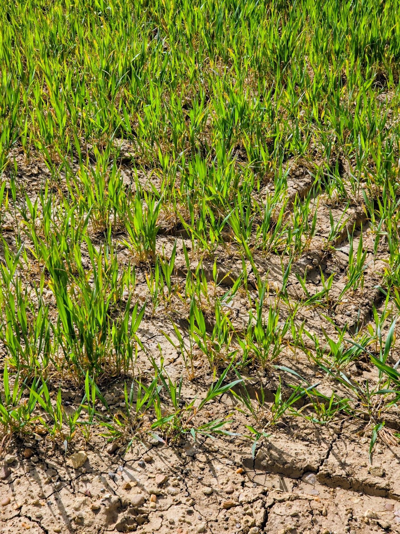 “A lot of spring barley in the North East of Scotland hasn’t tillered and produced secondary shoots. It’s the second tillering that you depend upon to get you the number of heads. If you don’t have the number of heads you won’t get the yield and the result is a very poor crop of spring barley – one of the main crops in the North of Scotland. We have some spring oats which were sown quite early and established itself reasonably well with a bit of a root before the dry weather started to impact.